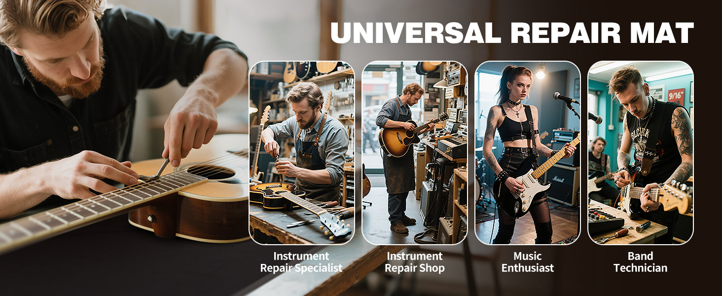 - Stable Non-Slip Guitar Mat: The work mat is made of durable TPE material with a textured, anti-slip surface on both sides, keeping your instrument securely in place during repairs or maintenance. Its thick(4mm), resilient design protects the guitar finish from scratches while providing a stable and comfortable work area